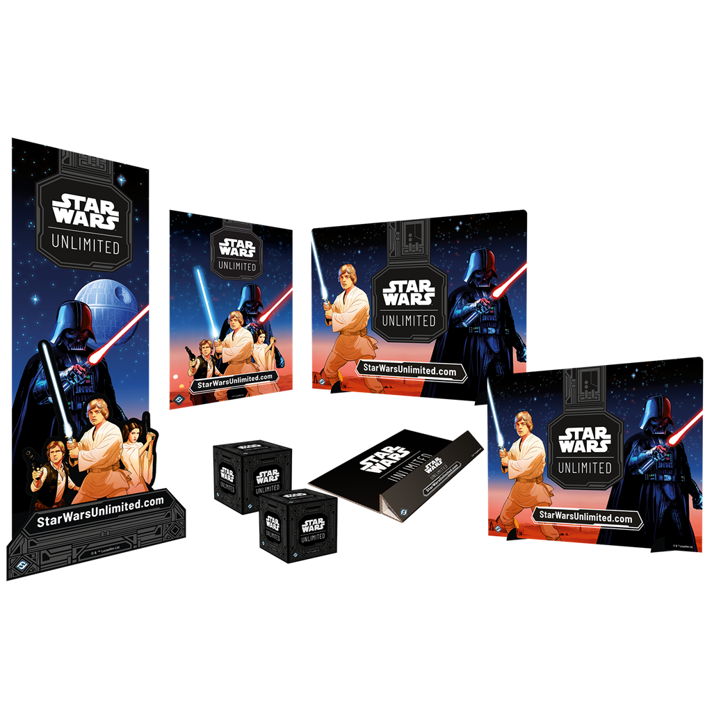 ¡Decora la tienda con Star Wars: Unlimited ! Utiliza este kit para decorar tu tienda y realizar una promoción de exposición en tienda. NOTA Sólo para tiendas Hobby Next